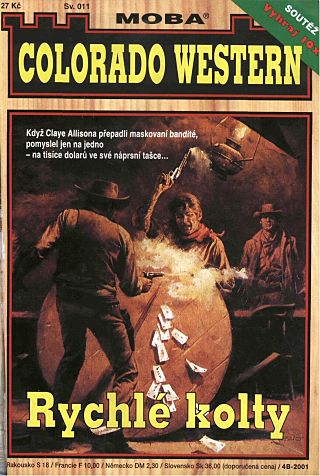 Clay Allison byl štíhlý, vysoký muž. Měl bledý obličej a pronikavé šedé oči. Ve chvíli, kdy mu na malé stanici jeden ze čtyř maskovaných banditů přiložil na hruď revolver, měl u sebe plátěnou tašku. Přepadení – blesklo Clayi Allisonovi hlavou a okamžitě pomyslel na tisíce dolarů ve své náprsní tašce. Zatímco jeden z banditů kontroloval z okna revolverem nástupiště, zbývající obstoupili Claye Allisona, přitiskli ho ke zdi a obrali ho. Ten, který mu šacoval kapsy, se posměšně ušklíbl nad balíčkem hracích karet. Když však otevřel náprsní tašku, ztuhl úžasem. Tak takový svazek bankovek věru neočekával. „Pojďme si o ty dolary zahrát, pánové,“ navrhl Clay Allison s chladným úsměvem. Bandita si zastrčil tašku s bankovkami do kapsy košile a rozpřáhl se k ráně.
